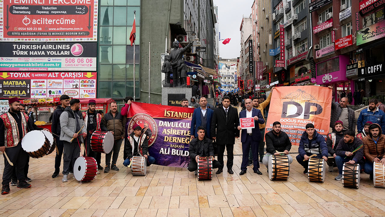 İstanbul’da Ramazan ayı öncesinde bir araya gelen davulcular, bazı mahalle muhtarlarının kendilerinden para talep ettiğini iddia ederek Şirinevler Meydanı’nda sessiz eylem yaptı.
