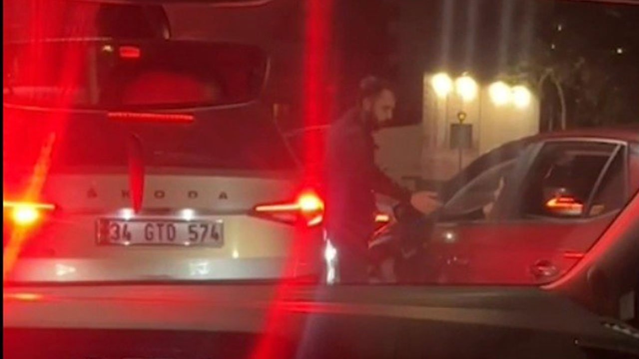 Şahsın çakarlı aracından inerek başka bir sürücünün önünü kestiği o anlar bir vatandaşların cep telefonu kamerasına yansıdı.