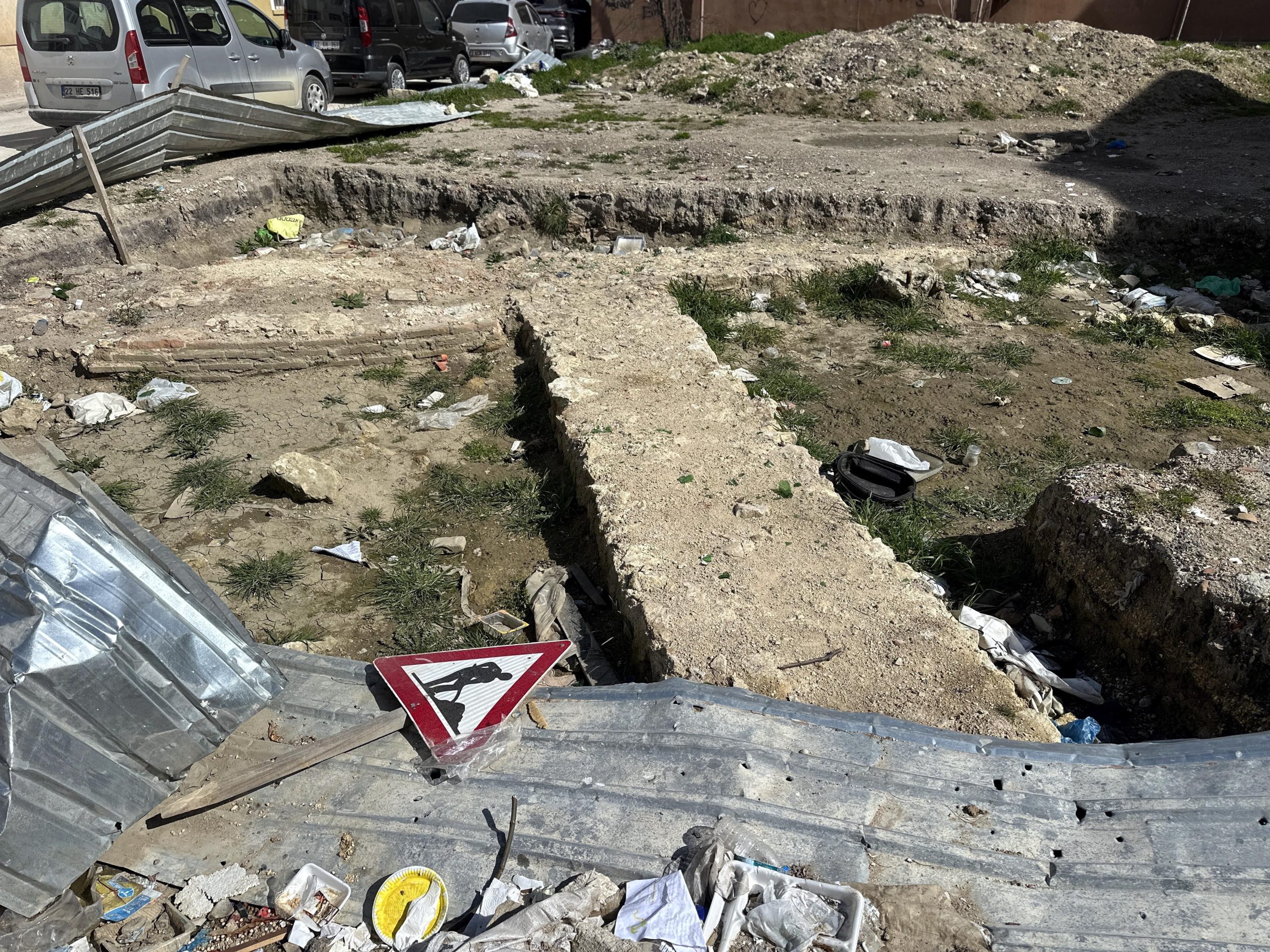 Kaybolan caminin kalıntıları arsada ortaya çıktı