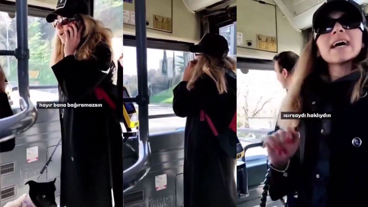 Köpeğine ağızlık takmayan kadın, yapılan uyarıları dikkate almadı ve yolculardan gelen tepkilere sert karşılık verdi. Bir yolcunun “Ben köpekle seyahat etmek istemiyorum” demesi üzerine kadın, “Seni alırım aşağıya, hava almayan beynine hava sokarım” diyerek hakaretlerde bulundu ve tehditler savurdu.